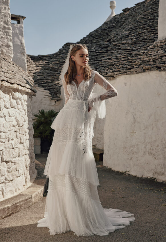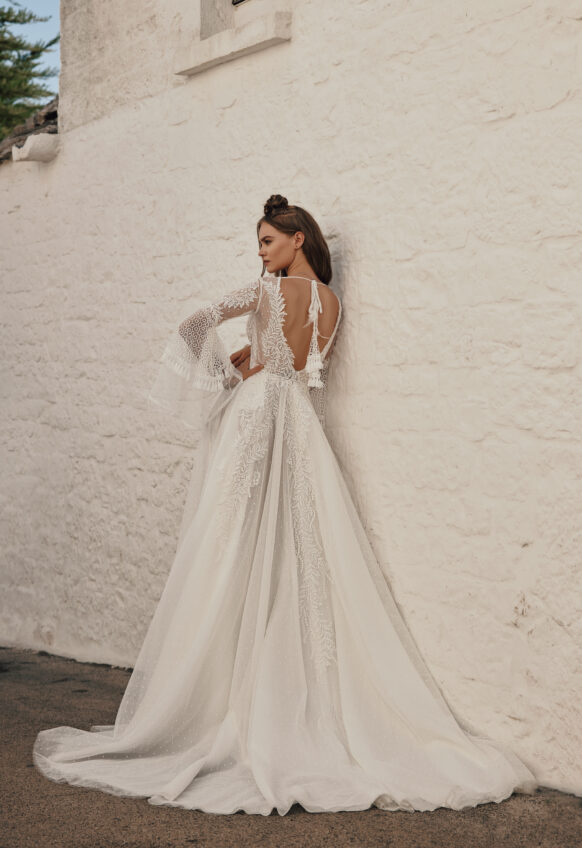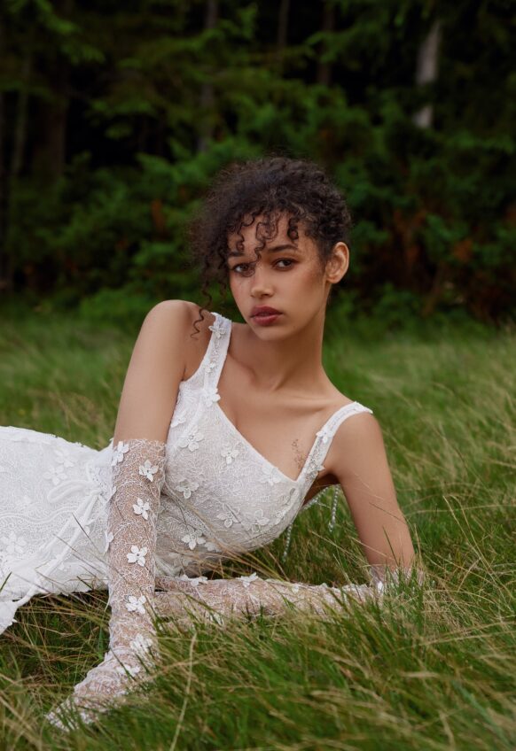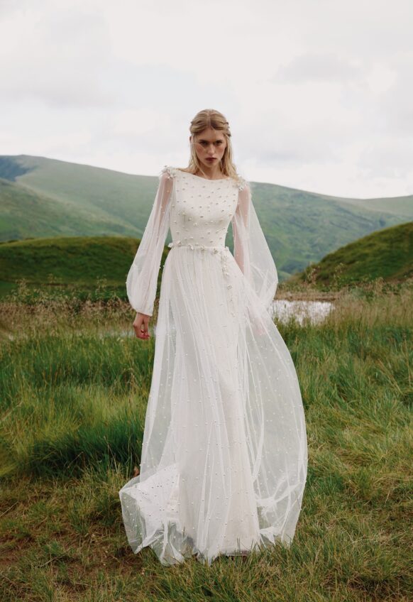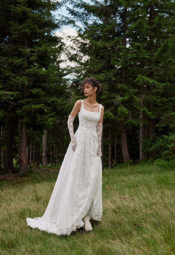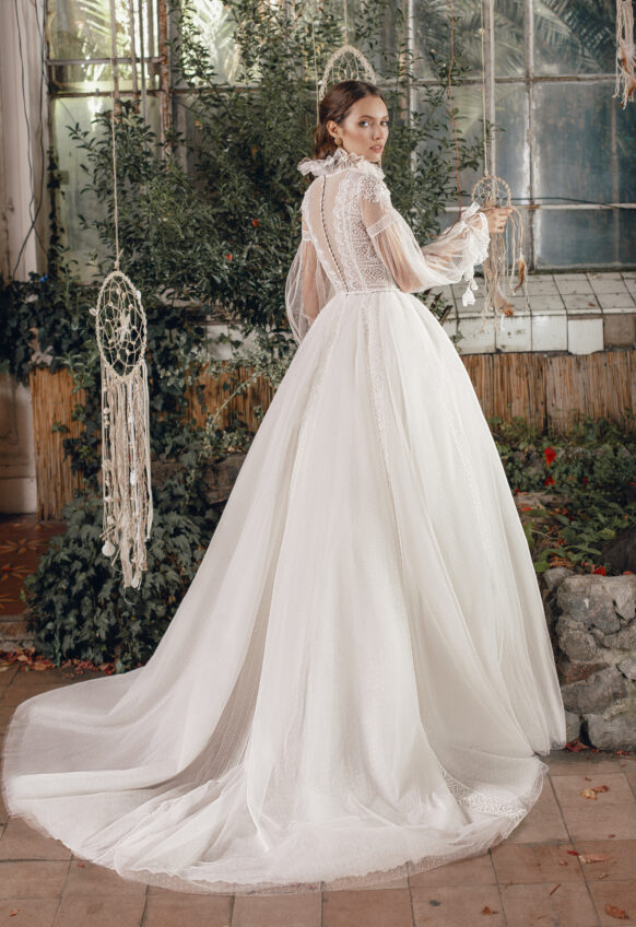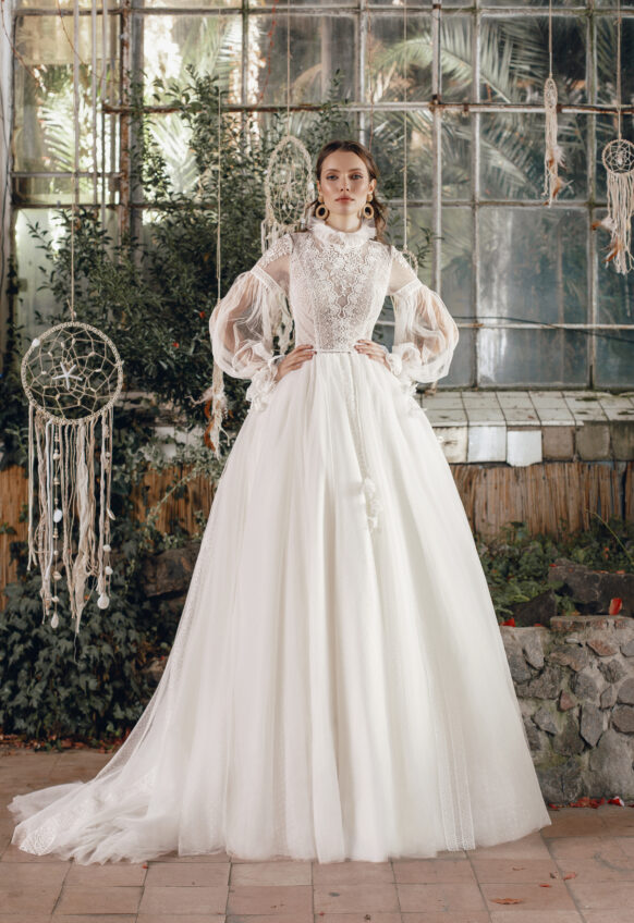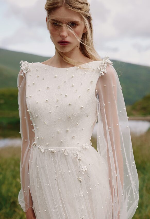 3 pcs - on shoulders and belt, chantilly lace, handmade ceramic flowers, tulle with pearls