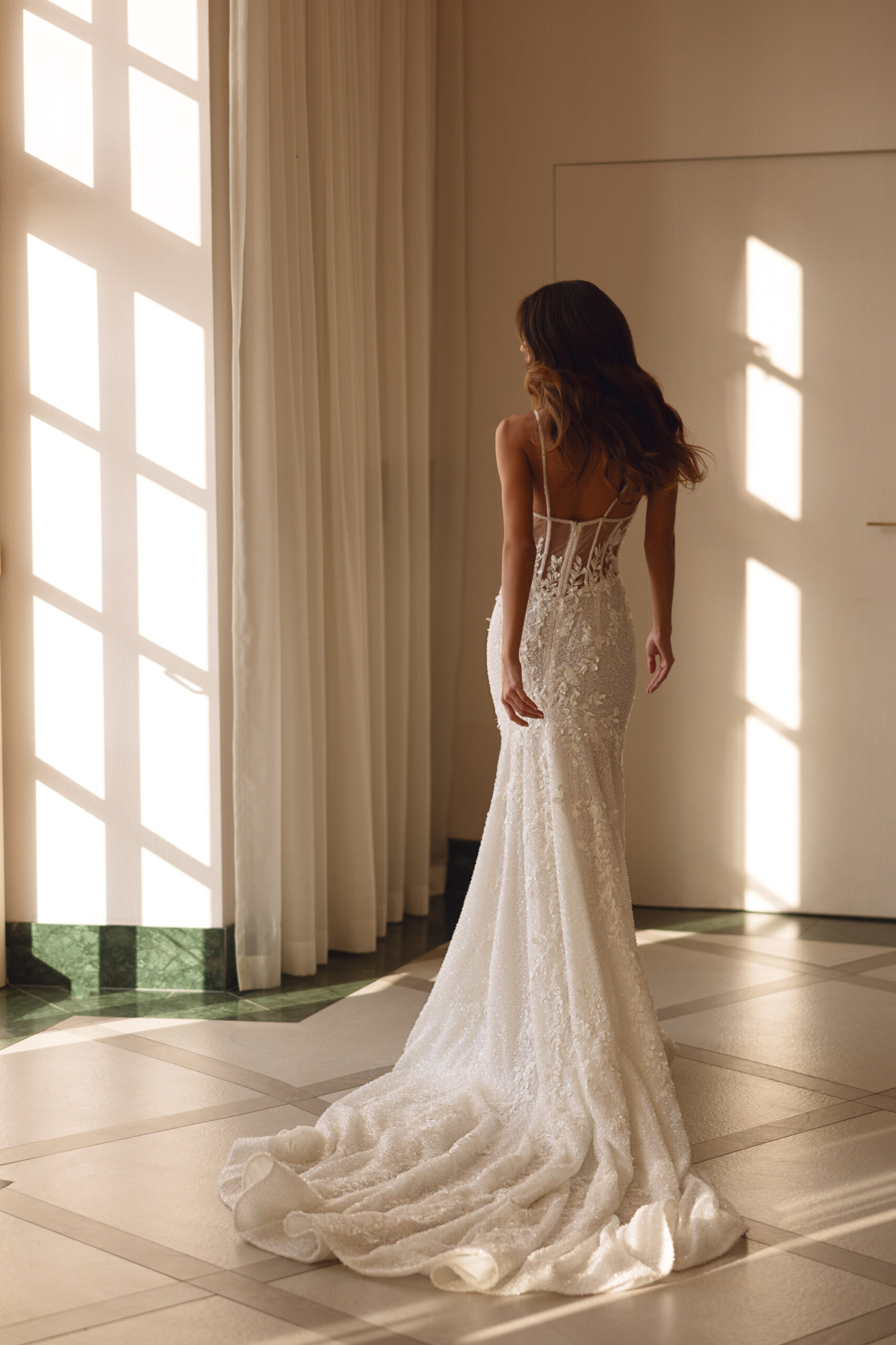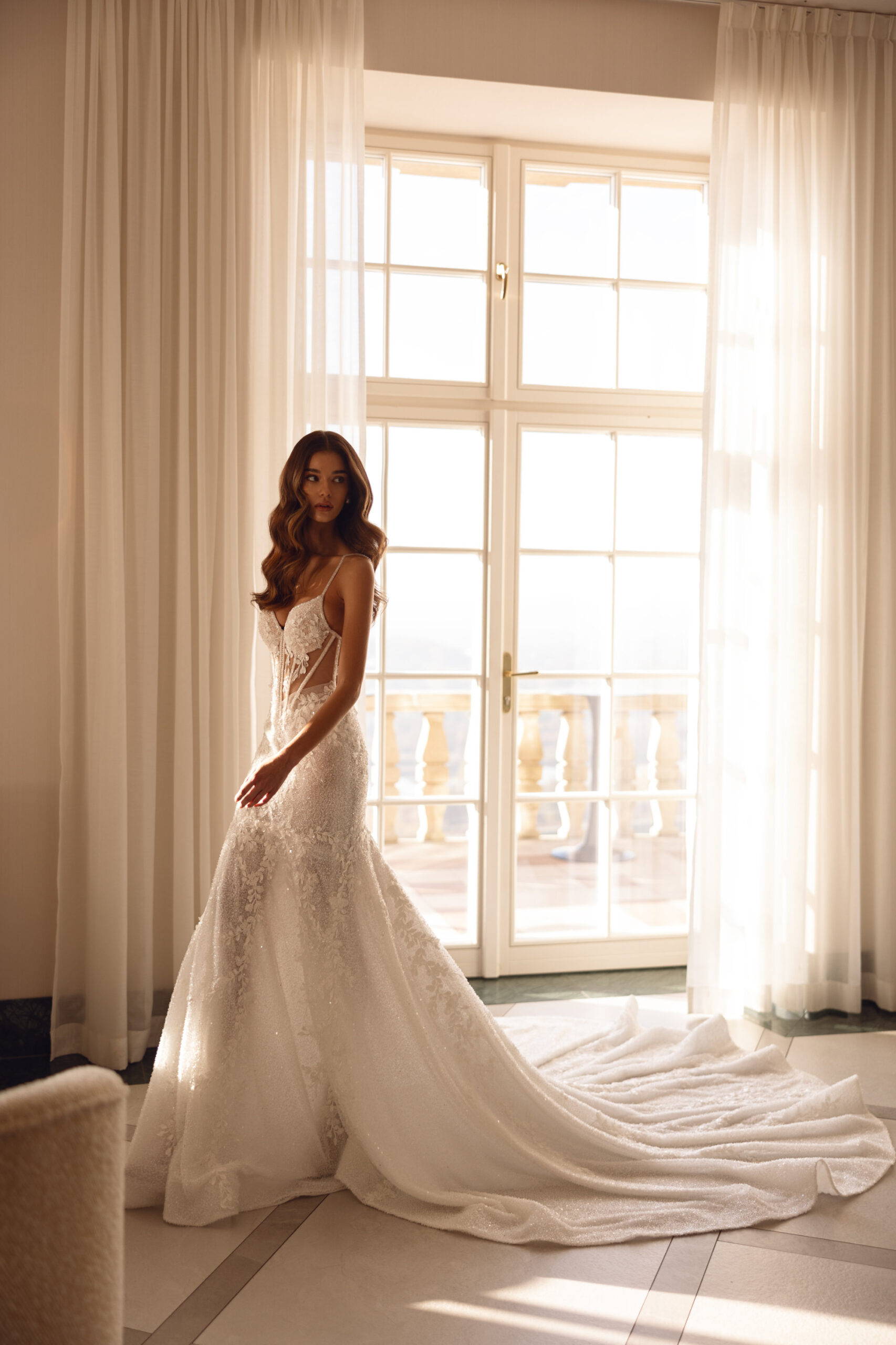 handmade 3D flowered embroidery, lace with beads and sequins, lining