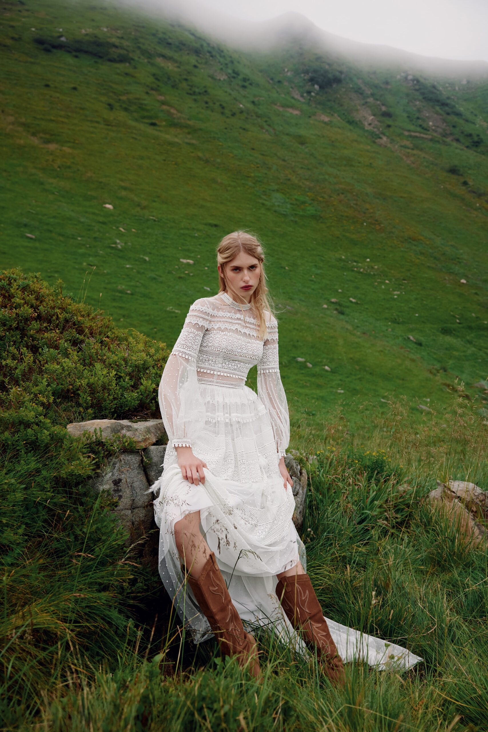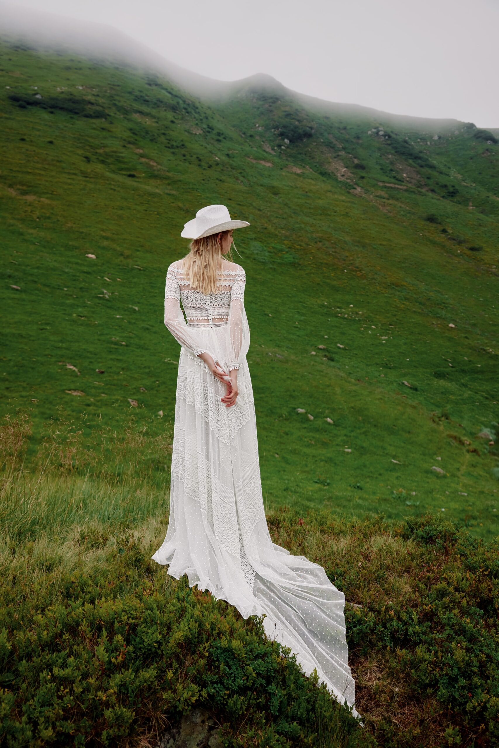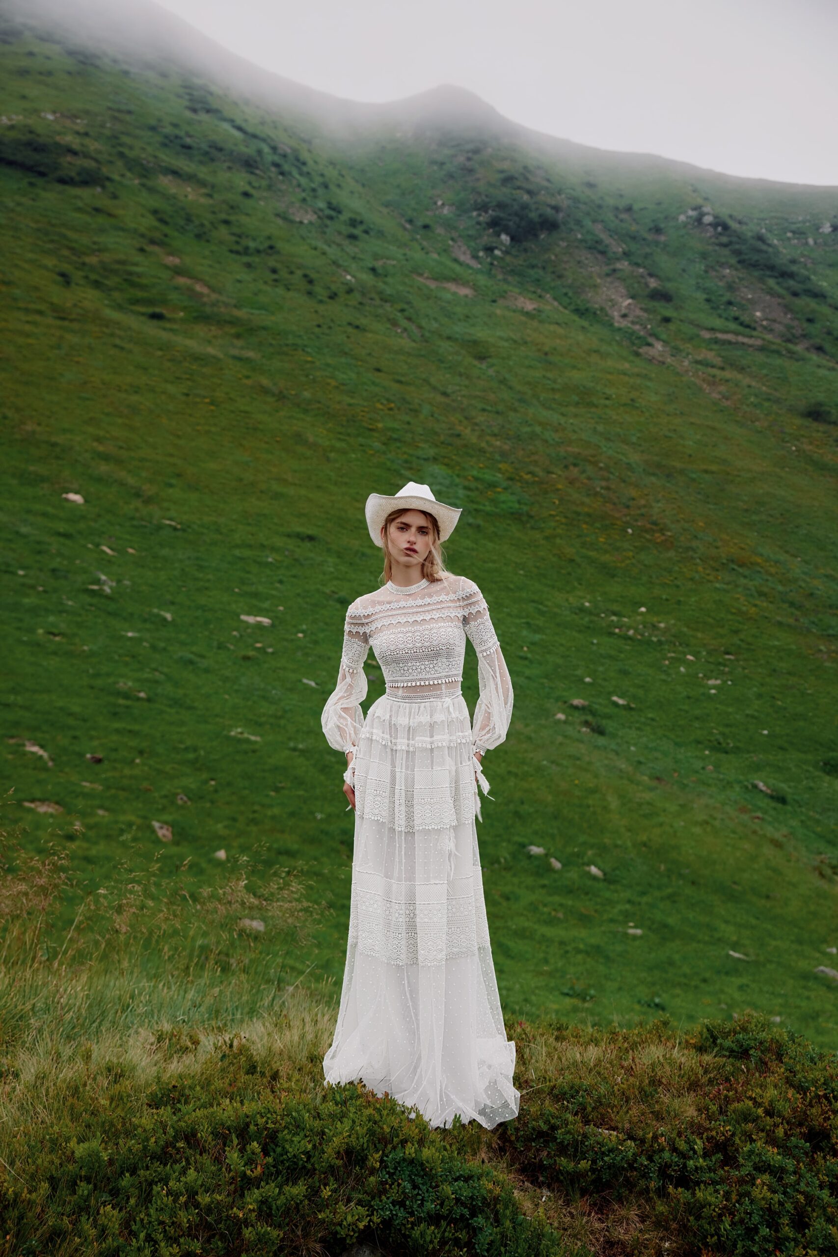 Dotted tulle, handmade decor with feather, Lace